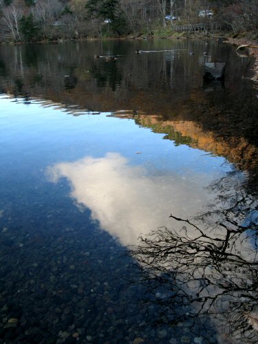 [湯湖に映る晩秋の景色]