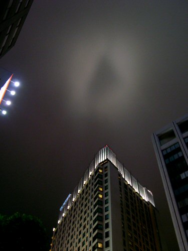 ビルの相似形が投影された夜雲