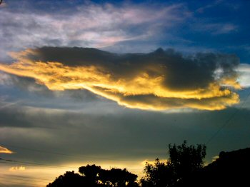 夕陽に映える扁平雲(積雲)と天空のブルー