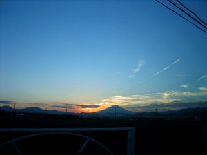 [バス車窓からみる地平の富士]