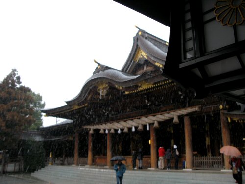 雪舞う寒川の杜