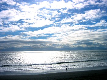 相模湾に白く輝く層積雲の群れ