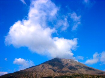 噴煙とつながって浮かぶ積雲