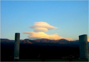 高積雲が重なってできた吊し雲(レンズ雲の一種)