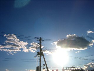 [電柱よりも低い太陽と雲のコラボ]