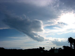 高層雲の下の方にニョキッと出てきた積雲