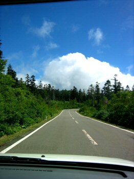 [とある山の頂を走る車中からの風景]