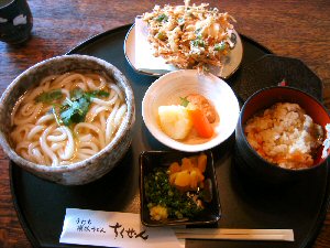 小麦は、水を加えたときの粘り強さで、強力粉・中力粉・薄力粉に分類されている。日本でとれる小麦は麺類に向く中力粉で、文字通り「うどん粉」としての利用価値が高い。「うどん」という食べ物は日本のオリジナルかと思いきや、調べてみたらそうではなかった。弘法大師が唐から伝えたもので、初めに伝えられたのが讃岐(今の香川県)なのだそうだ。「ちくぜん」の讃岐うどんは、麺が太く腰があって、上品な美味しさ。ダシはもちろん関西風なので控えめの味わい。それと、「五感で食べる」と云われるが、ここは店内の雰囲気がとてもよくて、落ち着いて食べることができるのがポイント。ランチセット(写真)は、食後の珈琲もセットでとてもリーズナブルです。