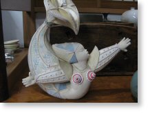 鎌倉駅から西へ10分ほど歩くと「佐助」という地域がある。その昔、小ぎつねを助けた男がお礼にもらった大根の種をまいたところ、その大根が当時流行していた疫病から人々を救ったという。今から16年ほど前(平成11年頃)、佐助稲荷神社に伝わるこの伝説を知った店主は、大根に運命を感じて、アトリエとして購入した家を大根料理店に変えてしまったのだそうです。写真はその一部ですが、大根づくしのフルコースがたっぷりと堪能できます。素材の味を活かした味付けで、とてもヘルシーなメニューですが、意外にもボリュームがあるので、精進料理のような食べたりなさはないでしょう。お雑煮風の大根スープ、おろし大根の茶漬けと、徹底的に大根が主役です!女将さんは、大根にまつわる講演活動もされているようで、とても気さくで雄弁な方ですので、楽しいお話も伺えると思います。写真(右下)の立体アートは女将さんの作品。