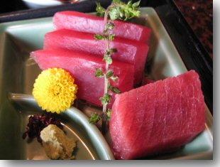 日本人がマグロを食べるようになったのは縄文時代らしい。人間の何倍も大きくて、しかも魚雷並みのスピードで泳ぐ巨大魚をどうやって捕まえられたのか不思議だが、太古の昔から人間の食欲は凄まじかったということだ。三崎は焼津に次ぐ冷凍マグロの水揚げ港である。その港に面したところに、明治41年創業の老舗「三崎館本店」がある。中に一歩足を踏み入れると、時間が止まっているかのような空気に当たって、ほっと和んでしまった。仲居さんに通された和室「ゆり」からは三崎港が一望でき、落ち着いた雰囲気でくつろげた。オススメランチ「鮪御膳」は、刺身、ハツ時雨煮、ホホ肉照焼、尾の天麩羅、サラダ、御飯、味噌汁、香物と、いろんなマグロが楽しめるし、いずれも美味しかった。地元で有名な「まぐろのかぶと焼」もこの店で生まれた名物らしいが、品のある料理や仲居さんのさり気ない気遣いに、老舗が守ってきた伝統が感じられる。店を出るとき、女将さんと一緒にいた3歳くらいの女の子が「おきゃくさんがだいじ」とたどたどしくしゃべっていて笑えた。未来の女将さんだろうか。またいつか、ゆっくり来てみたいお店である。