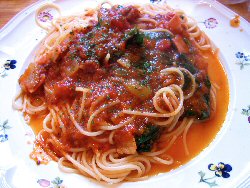 イタリアで発達したパスタは、現在、約200種類もあり、「小さな帯」という意味のスパゲティはその1つにすぎない。麺の起源は定かでなく、イタリア人探検家マルコ・ポーロが中国から伝えたという説もあれば、それ以前にマカロニのようなものが北イタリアで食べられていたという記録(13世紀)も残っているという。ちなみにパスタとは、「ペースト状のもの」という意味(世界食文化図鑑より)。