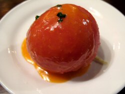 初めて食べたハンバーグは、おそらく母親が作った手作りハンバーグだろう。今でこそ、「手作り」が付加価値を生む時代になっているが、僕たちが子供だった昭和40年代は、それが当たり前だった。家庭で作る素朴なハンバーグにソースをかけて食べた味を、舌が記憶している。それから一体、何枚のハンバーグを食べてきたことだろう。デパートの最上階にあるレストランで食べたお子様ランチ、「デニーズ」などのファミレスで食べた冷凍もの、さらに「ハングリータイガー」のようなハンバーグ専門店(FR)での手ごねハンバーグもさんざん食べて、その後、そういった画一的で平均的な味にも飽きてくると、もうちょっと高級感のあるレストランで食べるようになってきた。つばめグリルの味は、老舗ゆえか、遠い昔に食べた家庭のハンバーグとどこかつながっているような気がして懐かしい。前菜に登場する冷やしトマトがまた旨い!トマトの甘みとドレッシングの酸味、底に敷かれたスライス玉ネギがスパイスとなって、最後まで飽きさせない。じゅるる…。