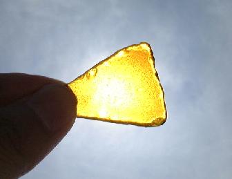 波に揉まれて角の丸くなった人間のようなガラス片で見る太陽。
