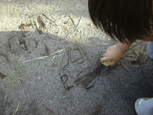 わたしの描いた車を見るなり、石で塗りつぶそうとする。