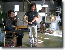 河口湖畔にある「G&C ART」という吹きガラス工房で作った。
