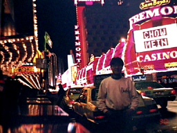 夕食はホテルのビュッフェ(食べ放題)だった。これも想い出に残る凄さだった。ボリュームが半端じゃない。大広間に数え切れない数の料理が並び、全部の味見さえできないほどメニューが多い。しかも、味だって抜群。僕たちは精一杯食べたけど、すぐに苦しくなってしまった。それに比べて欧米人の食欲には凄みがあった。大きな肉の塊もぺろっと食べて、次々平らげていく。デザートだってケーキにソフトクリームをたっぷりのせてペロリ。羨ましいほどの消化力。まるで別の動物のように凄かった。ビュッフェなので、どれだけ食べても$4と安すぎる。料理も安いが、宿泊も$16と田舎のモーテル並みである。全くいいところ!と笑っていられたのは、そこまで。このあと僕は、カジノでしっかりツケを払った。スロットよりポーカーが面白かった。面白いほど途中まではイイ線いく。何しろ、本物の現金がザクザク出てくるのだから迫力が違う。が、ふと気付くと銭が消えている。全く消えるのは早い!ちなみにKは、$100くらい儲けた。夢をみるには、いい街であった。