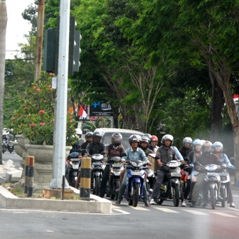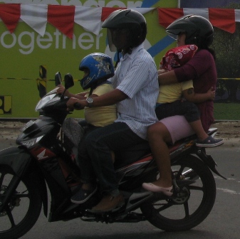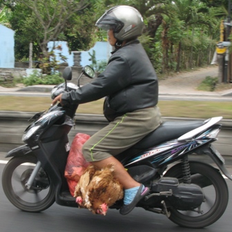 庶民の足となっているバイクは、日本の原付くらいの大きさ。エンジンの排気量は100〜135ccとやや大きいため、キビキビとよく走る。車の間を縫うように疾走するバイクがとても多い。しかも、バリには制限速度がないから、スピードもかなり速く、見ていてハラハラした。車線もあまり気にとめてる風ではなく、路肩を逆走しているバイクもよく見た。勿論違反なんだろうが、安全であればいいじゃないか、ということでコンセンサスがとれている様子。日本でいえば、自転車の使い方に近いように見えた。飲酒運転も可らしい。ヘルメット着用は義務づけられているが、被ってない人も珍しくなかった。細かな規則でがんじがらめになっている日本人から見ると、なんとも自由で大らかな風景である。