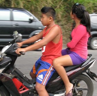 バリの成人は17歳だそうだ。17歳になると同時に、運転免許証がもらえる。「えっ、教習所には行かないの?」とマハルディカさん(ガイド)に訊くと、免許をもらう前に練習しているから、教習所へ行かずともすぐに乗れるらしい。で、その練習も普通に公道でやるのだそうだ。要するに無免許運転が社会的に許容されているということである。どう見ても中学生、若しくは小学生くらいの子供がバイクを運転している姿は、ちょっと異様だった。免許があってもなくても乗れるわけだから、免許自体は成人の証みたいなものなのだろうか。