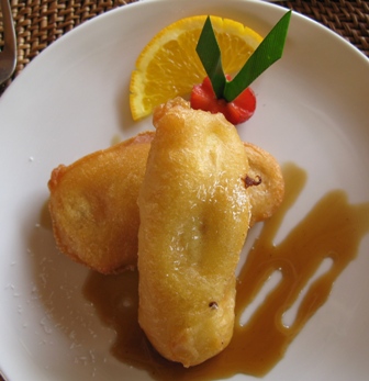 そんなこんなで、格別美味しいという印象はないバリ料理だが、ちょっと気に入ったのが、「ピサンゴレン」。「ピサン」はバナナのこと、つまり「揚げバナナ」である。料理といっても、おやつかデザートのようなもので、例えていえば、バナナのドーナツみたいな味わいである。それとバリならではの名物として忘れてならないのは、「コピ・ルアク」である。僕も何度かテレビで見たことがあるが、ジャコウネコの糞から作ったコーヒーのことである。ガイドさんの話では、美味しい豆だけを選んで食べるので、美味しいコーヒーになるとのことだった。一説には、ジャコウネコの腸内細菌等の働きで発酵し、独特の香りになるとのことである。僕も2回飲む機会があったが、一般的なバリコーヒーに比べて遙かに風味が強く、味に深みがあり美味しかった。しかし、希少価値のせいでとても高価である。コーヒー園でさえ、一杯が50,000ルピア(約500円)、豆が80,000ルピア/100gだった。中には安い物も出回っているそうだが、すべてニセ物だそうだ。