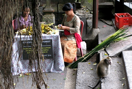 この快適な温度が1年中続く島での暮らしをふと想像してみたら、ちょっと遠慮したい気がしたが、それは自分の中での小さな発見でもあった。日本では、暑すぎる夏、じめじめした梅雨、凍えるくらい寒い冬、ちょうどよい五月晴れや澄み渡る秋空は長くは続かず、絶えず移り変わる四季が確かに忙しない。急に肌寒くなってくると、暑かった夏が懐かしくなるし、暑ければ暑いで早く涼しくならないかと思う。常に無いものねだりをしているといっても過言ではない。しかし、そういう変化の中に身を置くことで、暑さ寒さに適応する様々な工夫をしながら日々の生活にメリハリをつけ、飽きもせず生きていられるような気もする。バリ人は、違う。あくせくせず、もっとゆったりと寛容に生きているようにみえる。家の前で何するわけでもなくじっと座っている大人たちをたくさん見かけたが、「知り合いが通りかかったらおしゃべりしようと待っているのだ」とマハルディカさん(ガイド)から聞いた。「そんな暇があったら…」とつい考えてしまうが、そのくせ、ホテルのプールサイドで昼寝して、「こういう生活が憧れだったんだ〜」と喜んでいるのだから、我ながら矛盾してるなぁと思わないではない。
