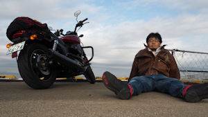 帰りに堤防の上を歩いているとき、やはり、この風景を撮りにきたらしき男性がいた。なんとなくそちらを気にしながら歩いていたときに足を踏み外し、堤防から落ちてしまった。高さは1メートルほどで大したことなかったが、受け身をとる間もなく、左肩を堤防にぶつけてしまった。ちょっと撲っただけでツーリングには全く支障がなかったのだが、家に帰ってみると、激痛で腕が上がらなくなっていた(涙)。骨折はしてない気がして医者にはいかなかったが、それから2ヶ月が経った今でも痛みが残っている。水泳は半月ほどできなくなり、筋トレはいまだにできないままだが、バイク事故でなくてよかったと思う。