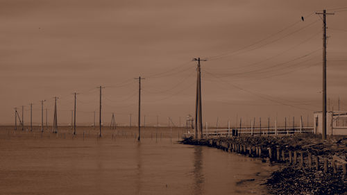江川海岸は潮干狩りスポットなので、この時期は閑古鳥が鳴いていた。ただ、最近はインスタ映えすると話題になっていて、僕もネットで見つけて訪ねたのである。右上の写真がソレ。海の沖まで続く電柱がなんともいえぬわびさびの雰囲気を醸していて、古いイタリア映画に出てきそうな、もしくは昭和の日本のような懐かしさを感じる風景だった。海の向こうには工業地帯の煙突が見えるが、それも遙か昔のように遠くに感じられた。インスタ的には水平線に沈む夕日をバックに撮るのがオススメらしいが、朝だったのでセピア色に加工して撮ってみた。