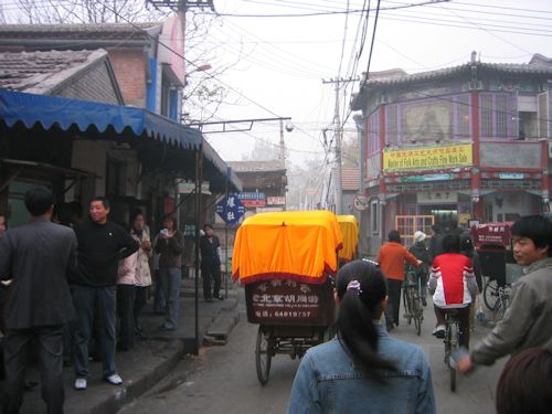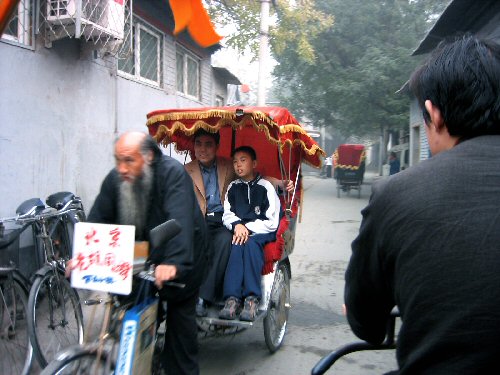 しばらく車で走るが、どこを走っているのか案内もなく、全くわからなかった。そのうち、急に停まった。「ここで降りて下さい」そう言われて車から降りると、待っていた中国人と何か相談を始めた。何だかよくわからないが、現地の中国人ガイドが案内してくれるようだった。あとでわかったのだが、それは、三輪自転車で故同を巡る「故同オプショナルツアー」で、ツアー代金として420元もとられてしまった…。