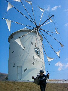 真っ白な「ギリシャ風車」が立つ小高い丘から瀬戸内海を眺めると、