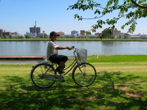 新潟での目的は、「コシヒカリ」である。とりあえず駅前でレンタサイクルを借りて食べる処を探し、信濃川にかかる萬代橋(重要文化財)を渡って、新潟グランドホテル内にある仏レストランに入った。最初、ホテル内とはわからず、しばらく川岸をうろうろしていたので、すっかり空腹である。しかも、猛烈な暑さで身体が火照っていた。なかなか梅雨明けしなかった今夏だが、明けてからは連日猛暑である。新潟の夏も