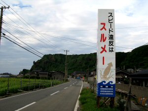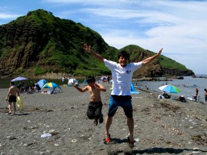 翌日も晴天に恵まれた。この日は、島の東端にある二ツ亀海水浴場で、のんびり泳ぐ予定だった。海岸線を走っていると、尖閣湾の案内があって、ちょっと立ち寄ることにした。驚いたことに、そこは「山椒大夫」の中で、厨子王とその母が再会する浜だった。たまたま僕は、去年、溝口健二監督の没後50年を記念して上映されていた「山椒大夫」をみて、その浜で再会するラストシーンを鮮明に覚えていたので、思わず思いだし泣きしそうになった。古くなった掲示板に気付く人もなく、ガイドにも出てなかったが、僕はとてもいい場所と出会えた喜びをかみしめていた。車は両津港で借りた新型ポルテだったが、ここではどれだけ走っても、ガソリンを給油せずに返却してよいことになっていた。なんとなく得した気分だが、実際には、そんなに走れるほど広くないわけである。とても高い岸壁の上にある海岸線を北上し、途中でキレイな場所があるといちいち停まりながら、1時間半もすると目的地に到着した。