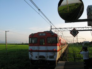 新潟駅に戻ると、JR白新線で新発田駅へ、さらにJR羽越線に乗り継いで月岡駅まで行った。羽越線は運行本数がとても少なく、待ち時間が長かったが、電車好きの息子は、乗客がボタンで開閉するドアに大喜びだった。車中で地元の高校生等がいたが、見た感じは都会と変わらないんだな〜と思った。月岡温泉は古くからある温泉地のようだった。地震の影響で客は3組だけだったが、料理はとても美味、接客も丁寧で、とてもいい旅館だった。温泉も貸し切り風呂ような状態で、のんびりと日常の疲れを癒すことができた。月岡温泉はいいよって、職場に帰ってからずいぶん宣伝した。