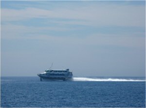 翌日、佐渡島へ。新潟港からは、ジェットフォイルという高速船で渡る。最高時速80kmで運行するこの船は、新潟−佐渡間を1時間で結ぶ。フェリーが2時間20分だから、かなり早い。ボーイング社が作っているせいか、乗ってる感じは飛行機のようだ。ジェットエンジンのような音とともに、洋上を飛ぶように走る。ただし、以前、クジラと衝突する事故があったため、全員シートベルト着用となっている。そのため、甲板に出て眺めを楽しんだりできないのが、ちょっと残念。大抵の客はすぐにうとうとし始めた。僕もまどろんでいて、危うく時速80kmの瞬間