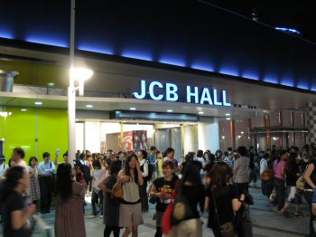 パフィーのライブは、昨年に続いて2回目。JCBホールは東京ドームのすぐ隣に今春オープンしたばかりのライブハウスだった。満席というか、ほとんどスタンディングなので、満杯といった方がいいだろう。おっきな兄ちゃんからちっちゃいギャルまで色とりどりだったが、みんなパフィーのファンということでは一致団結してるんだと思う。オープニングは、透け透けの幕に波のゆらゆらが映し出されて、まるで水の中にいるような演出だった。「プールにて」。2000年のアルバム「SPIKE」に収録されている地味な曲だが、こうして聴いてみるとなかなかいい。作詞・作曲は奥田民生。そう、パフィーには民生がよく似合う。産みの親であるから当然かもしれないが、最近のパフィーはすっかり民生不在で頑張っている。一番新しい「Honey