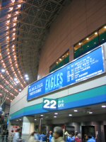 外は雨。後楽園球場時代なら天候も気になったが、東京ドームになってからは、天気は関係ない。しかし、座席に着いて唖然とした。1階席の最後尾(すぐ後ろでグッズ販売がにぎやかしい。Tシャツ1枚3500円は高いので敬遠)、その席からステージを見ると、人間が「・」にしか見えない。これだからドームは避けたいのだが、今回は東京ドームしか選択肢がなかった(あとで横浜アリーナが追加されたが)。今から10年も前の1993年12月、U2の「ZOO TV TOUR」のときも2階席の後ろの方で、音楽が音楽だけに音がウヮンウヮン回ってしまって最悪だった(あのド派手な舞台装置の生ライブを見れただけでも幸運だが)。そうそうU2が2005年からワールドツアーを始めるというニュースもある。今から待ち遠しい。そんな苦い想い出の東京ドームだが、スタジアム・ライブの醍醐味というものもなくはない。大音量の音楽と共に数万人の観客が一体となって大波のようにうねるという体験は、小さなライブハウスとは全く違ったものではある。