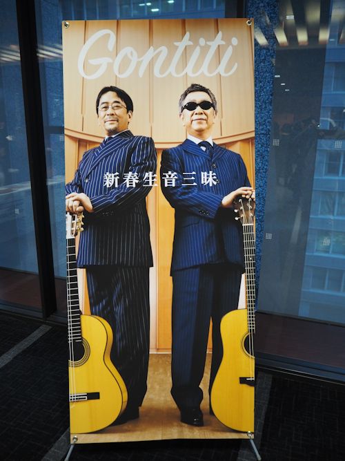 よみうり大手町ホールは、読売新聞社の本社に併設されている。日本一の発行部数を誇る会社だけに、立派な建物である。ゴンチチも初めてらしいが、こういう機会がなければ、訪れることもないだろう。会場に入ると、木材の香りがしてリラックスできた。会場の大部分は、60代以上の高齢者のようだった。高齢者といっても、近頃の60代は、一昔前の中高年くらいハツラツとしている。ゴンチチの二人も、63と62である。出会って39年、と言っていた。一挙手一投足にあ・うんの呼吸が感じられる二人である。