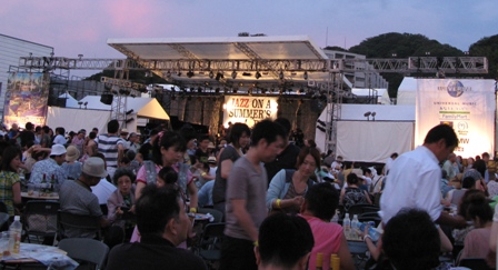 「真夏の夜のジャズ」(60)という映画がある.。アメリカのロードアイランド州ニューポートで毎年開催されていた同名のジャズ・フェス(第5回/1958年)を記録した映画で、ルイ・アームストロングやチャック・ベリー、アニタ・オデイなどそうそうたる出演者が並ぶ。ニューポートはその名のとおり港町で風光明媚な保養地でもあるそうだから、どこか葉山に似ているのかもしれない。その名を冠した「真夏の夜のJAZZ in HAYAMA」は今年で15周年らしい。昨年は、ビル・エヴァンスの名盤「ワルツ・フォー・デビィ」の録音50年を記念して数々の名曲がカバーされ、好評だったようだ。行こうか迷っていたのだが、たまたま応募した抽選が当たったので、職場のジャズ好きな上司(ドラマー)を誘って、いざ葉山へ。