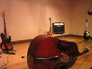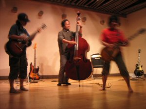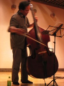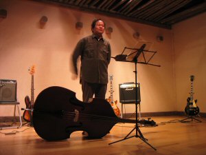 ここんところ、ギターをコントラバスに代えての弾き語りが後藤のスタイルになっている。