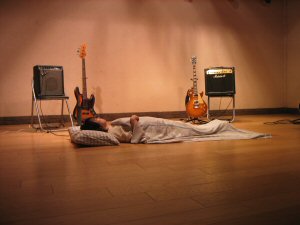 いきなり枕をおいて寝ているところに、3歳のときに歌っている「赤い靴」が流れる。19○○年、ムラノ○歳という朗読が始まる。「そうか、音楽自伝なんだ」と気付く。大ファンだというブルーハーツのカバーがあったり、16歳のとき初めて書いた「23区を抜けて」、そして、初めてギター所有して書いた「8ビート」と続く。