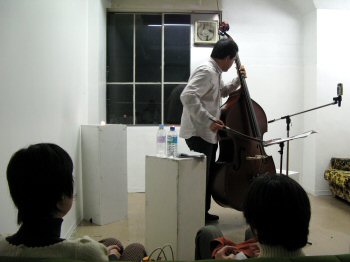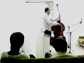 昨今、ライブ三昧の後藤ではあるが、弾き語りというのは、ひさしぶりに聴く。本人が開設するHP「耳の穴」の8周年記念ソロ・ライブである。新年早々の書き初めならぬ、歌初め、弾き初めというところだろうか。会場は、旧関東財務局および旧労働基準局ということで、ZAIM(=財務)とシャレている。昭和3年に建てられた歴史的建造物の中は、エレベーターもなく、いかにも役所の事務所のような飾り気のない作りになっているが、市民団体やNPOが創造活動を行う拠点として利用されているところである。別室ではヨガ教室も開かれていたが、ここ405号室では、今まさに、後藤勇セルフ・プロデュースによる「歌、コントラバスと弓」が始まろうとしていた。