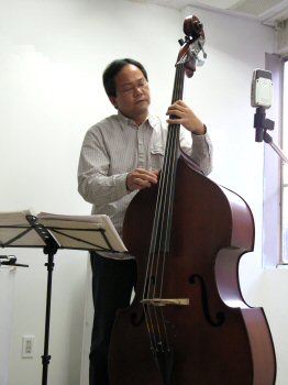 1曲目は、あれ、何だっけ?とにかくたくさんの曲が演奏され、歌われた。ほとんどの歌は知っていたが、どれも聴いたことがあるのは、ギターの弾き語り、またはバンドによる演奏で、コントラバスの弾き語りで聴くのは、初めての曲が多かった。後藤がコントラバスを始めてもう何年かたつと思うが、最初の頃は、コントラバスの弾き語りというのが、どうにも馴染めなかった。ギターに比べると、音の表情が単一で、それは和音を使わないことも関係していると思うが、とにかく物足りなさを感じた。しかし、後藤本人は夢中でコントラバスを弾き、歌っていた。もしかしたら日本で唯一のスタイルかもしれないが、とにかく楽しそうで、うれしそうだった。