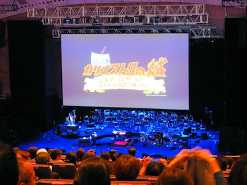 映画上映後、コンサートがあった。その中の大野氏の裏話が面白かった。今作は、かなりの精度で画と音楽が合わせられていて、それを生演奏するとなると、短い間でのテンポやリズムの変化、場合によっては楽器を持ち替えたりという離れ業をやってのけなければならないようだ。それにもまして大変だったのは、当時のスコアが残ってなかったため、映画を繰り返しみながら一から譜面作りしたことだと言っていた。台詞が重なるシーンでは音楽が小さくなっていて、耳コピも相当な苦労があったようである。今回、書いた譜面の重さが10kgにもなったと言っていた。ボーカルには、松崎しげるや三代目峰不二子の沢城みゆきさんらが出演し、大きなオーケストラをバッグに名曲の数々が披露された。