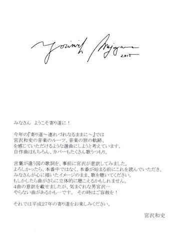 ♪宮沢和史 弾き語りツアー 寄り道2015 「連れづれなるままに…」