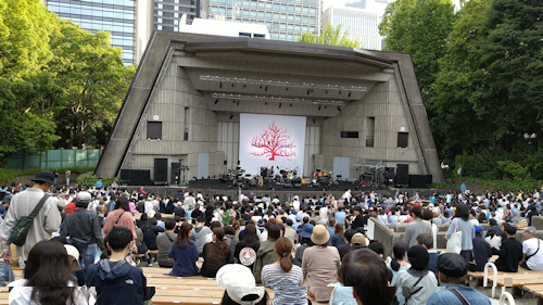 大正12年(1923)開設の日比谷野外音楽堂は、ちょうど100年を過ぎ、老朽化や音漏れ改善のため建て替えが予定されている。野外ライブの開放感は格別である。とはいえ、あらかじめチケットを購入する時点では、当日のお天気模様は予測不能である。ものすごい雷雨になる可能性もないわけではないし、過去にはそんな最低な野外ライブもあった。最低だったからこそ忘れ得ぬ思い出になってもいるけど(苦笑)。たとえ雨でも行こうと思えるとしたら、それは、今の宮沢さんの音楽を、建て替え前の野音で体感したいという思いしかない。結局のところ、何かしらのリスクを引き受けない限り、最高の出会いや至福の時に巡り会うことはない。当選がわかってる宝くじが宝くじではないのと似ている気がする。