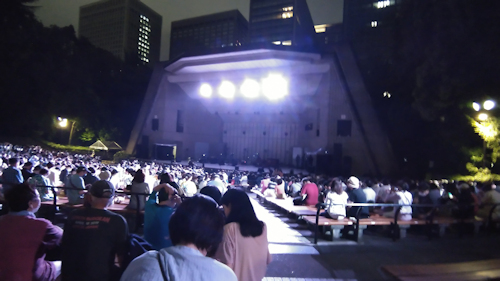 日比谷野音はいい!夏の終わりの夜風は肌に気持ちよく、蝉が遠くで鳴いてたり、都心とは思えない開放感に心が緩んでいく。ただ、天気の心配があるので、積極的には行かないようにしている(笑)。この日も週間予報では金曜日から火曜日までずっと雨マークだったので、「どっちにズレても雨かよ~」とヤキモキしていたら、前日になって奇跡的に雨マークがとれたのだった。いつも土壇場のギリギリで何とかなる。何かのお陰様と思う。