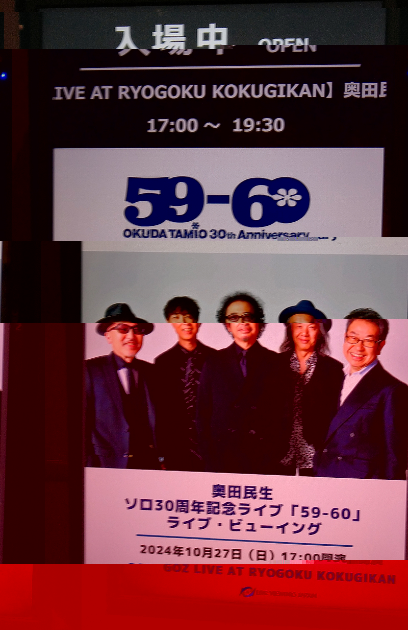 民生をきっかけに興味をもったミュージシャンは少なくない。パフィーは基より、斉藤和義、矢野顕子、フジファブリックなど。中でも一番は陽水さんだ。どちらかという好みの音楽、声ではなかったが、民生がカバーした「最後のニュース」に感銘を受けた。陽水さんと交流があった筑紫哲也さんの依頼で作られたニュース番組「ニュース23」のエンディングテーマなのだが、その歌詞は1日の終わりと世界の終わりを暗示するようなもので、陽水さんの才能に惚れ惚れとしてしまい、以来、大ファンである。はじめのうちは民生のカバーの方が好みだと思っていたが、陽水さんの音楽をよく聴くようになってみると、やはり陽水さんが歌う「最後のニュース」の方が遙かにいいと思うようになった。歌は世につれ、世は歌につれというが、同じ歌であっても時代が変われば、或いは自分が歳をとればまた違って聞こえてくるのが不思議で面白いところである。国技館のチケットが取れずライブビューイングではあったが、十二分に楽しい時間だった。
