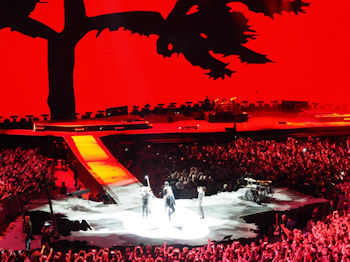 U2を初めて聴いたのは、たぶん「ニュー・イヤーズ・デイ」(83)だと思う。高校1年だった僕は、土曜日深夜に放送していた「全米トップ40」をメモ書きして、月曜日にクラスメイトのS君とリストの穴埋めをしながら、あーだこーだと半日くらい洋楽談義に花を咲かせていた。その中に、この曲もあったと思う。当時は、特別好きというほどではなかったが、気になるバンドではあった。そして4年後(1987)、伝説的な名盤「ヨシュア・ツリー」が誕生することになる。このアルバムで僕は心を鷲づかみにされた。他の誰とも似ていないエッジのギター、そして情感のこもったボノの歌声に何度、感涙したことだろう。過去のアルバムやロードムービー「RUTTLE AND HUM」などを通じて、まだ見ぬアメリカに憧れを抱いていたものである。実際に彼らの来日公演をみたのは、「ZOO TV TOUR」(1993)と「VERTIGO TOUR」(2006)、そして13年ぶりの今回で3回目になる。しかも、今回は、名盤「ヨシュア・ツリー」を完全再現したライブである。これは奇跡としか思えない!
