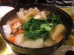 この日は若旦那のリクエストでお鍋を囲み、アンコウや生牡蠣、半島では有名な「三平」のチキンに、