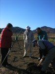 秦野で栽培されている健康野菜「アピオス」の収穫調査。収穫したばかりの「アピオス」を炭火焼きで食す。実に旨い!寒さに震えながらも、肩触れ合う距離で話がはずむ。