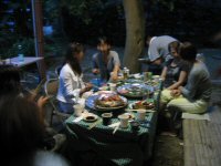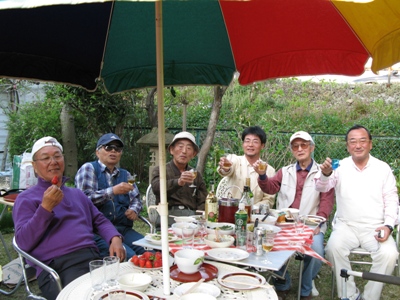 バーベQをやると聞いてはいたが、本格的な料理が次々出てきて、贅沢な野外レストランの様相である。