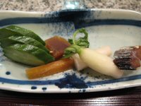 地元で獲れたトレビスやリーキをはじめ、プンタレッラ、ビーツ、松輪サバの燻製&セロリなど